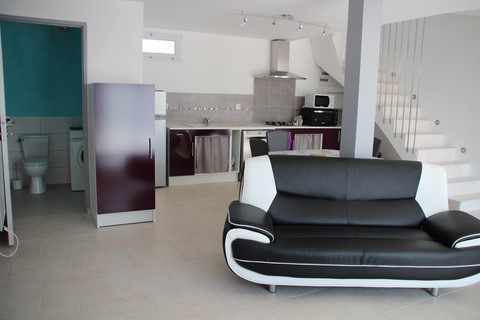 Rez-de-chaussée : pièce à vivre / salon avec coin cuisine et wc
