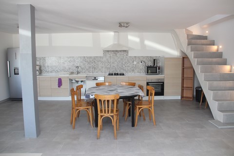 Rez-de-chaussée : pièce à vivre avec cuisine / buanderie - wc
